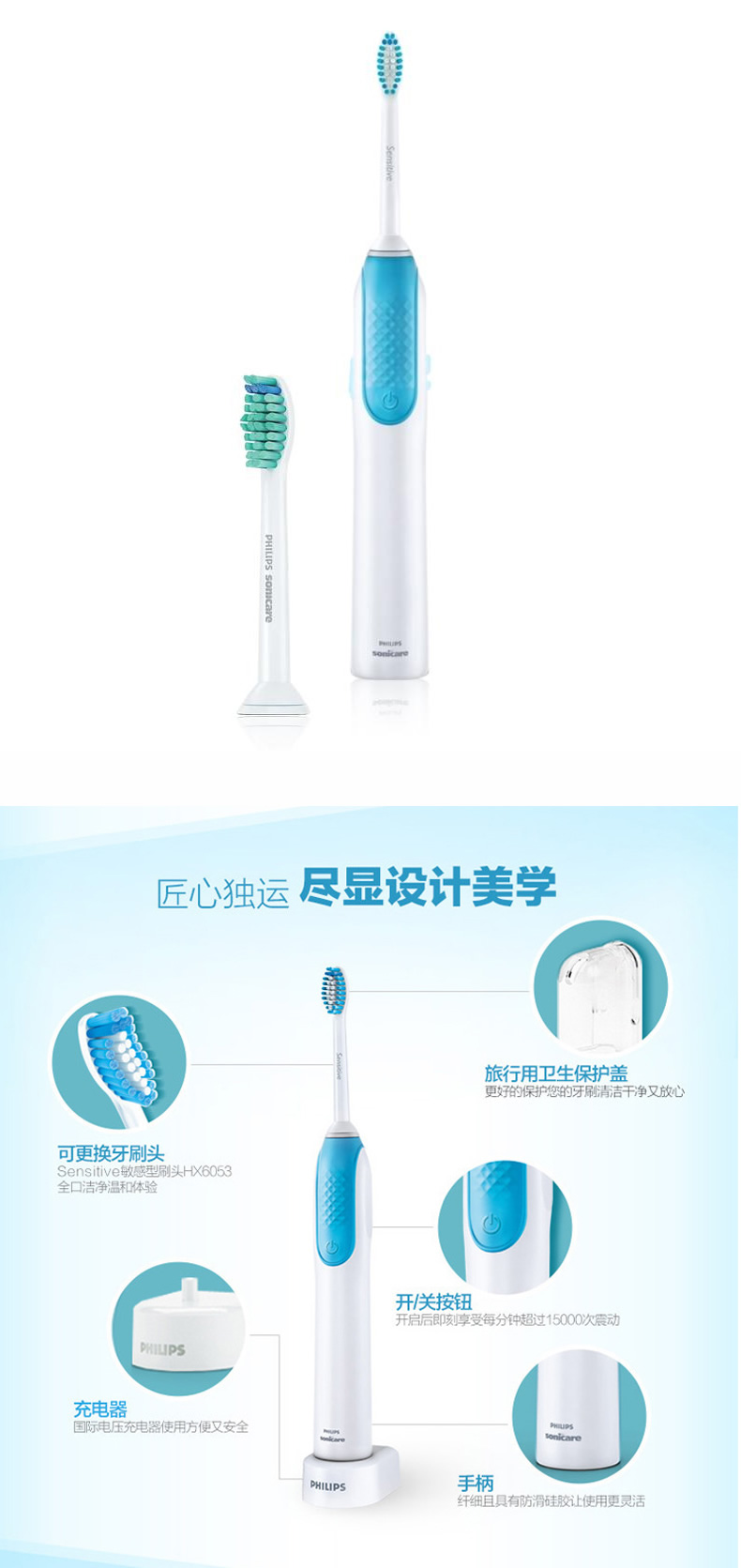 飞利浦充电式声波震动牙刷组合