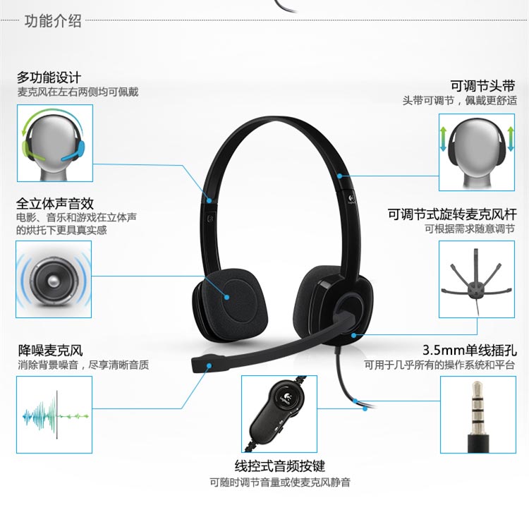 罗技立体声耳机麦克风