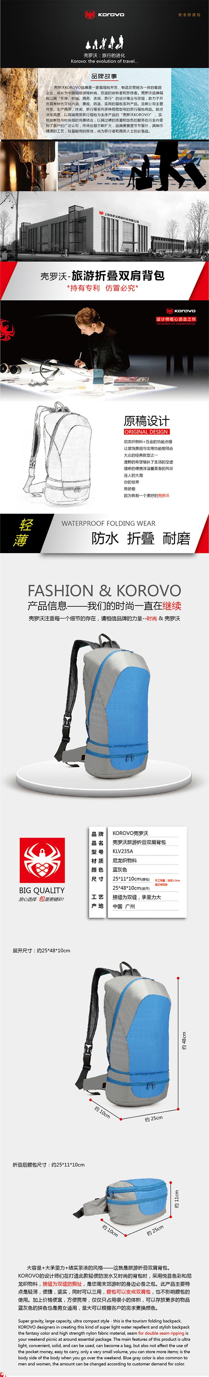 旅游折叠双肩背包KLV235A