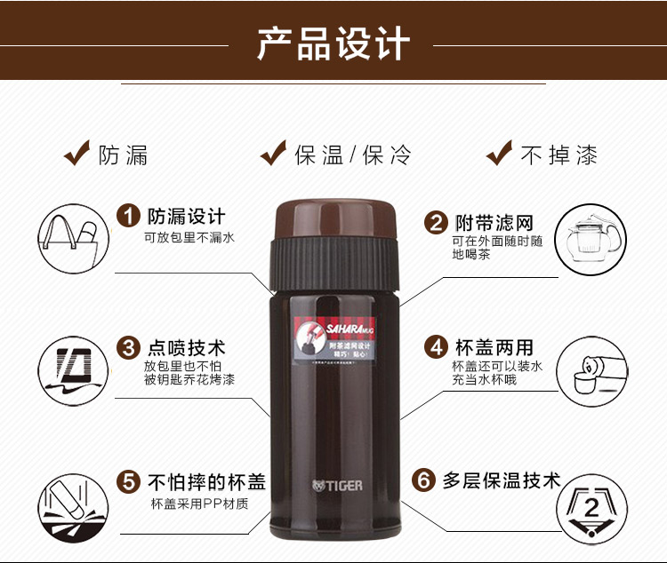 虎牌不锈钢泡茶杯 带